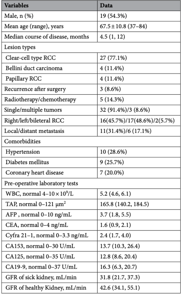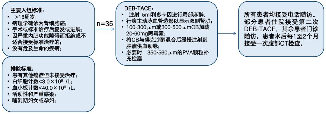 研究类型:一项回顾性研究,纳入了2016年7月至2020年5月期间的35名不可切除的肾细胞癌患者。旨在评估CalliSpheres®加载阿霉素行动脉化疗栓塞治疗不可切除的肾细胞癌患者的可行性、安全性和临床疗效。